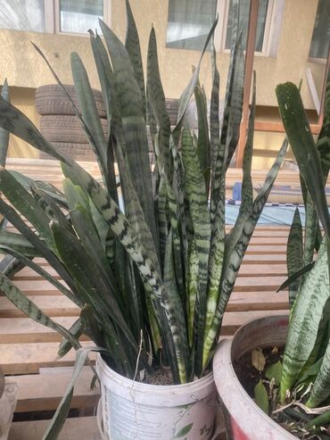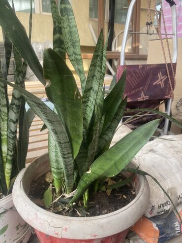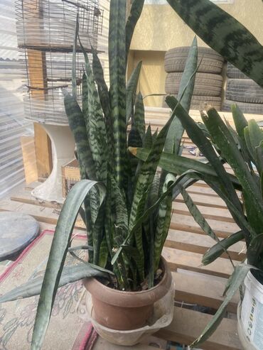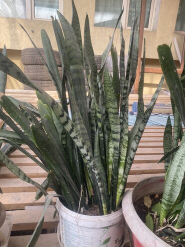Сансевиерия (Sansevieria trifasciata, «щучий хвост», «тещин язык») в горшке.