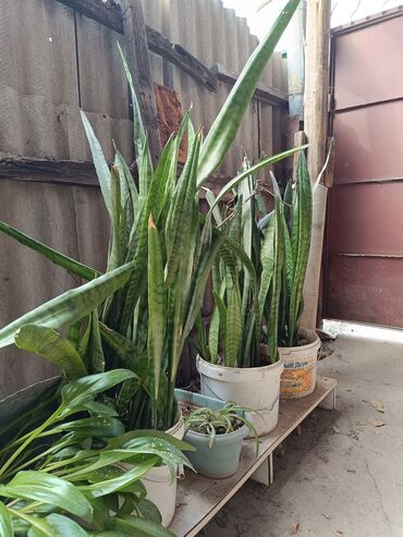 Сансевиерия (Sansevieria, «щучий хвост», «тещин язык») — крупные взрослые растения в ведрах.