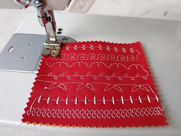 - Прямая и зигзагообразная строчка, усиленные декоративные стежки для кожи, экокожи, мебели, аксессуаров и интерьерного текстиля.