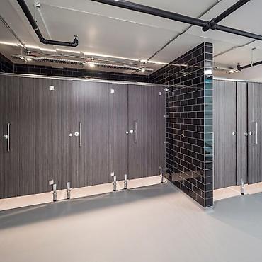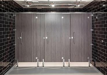 Перегородки из HPL-панелей позволяют оформить санузлы в едином дизайнерском решении: от строгого минимализма до премиального интерьера.