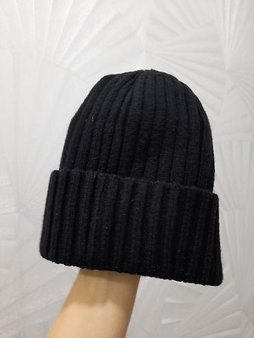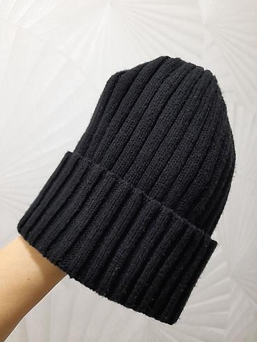 Черная вязаная шапка-бини