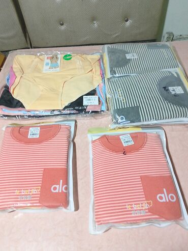 - Домашние костюмы/пижамы «alo»: трикотаж, полоска, круглая горловина, накладной карман. Упакованы по отдельности.