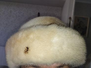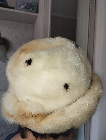 Шапка из норки, женская, светло-бежевая (молочно-сливочный оттенок) с натуральными темными метками на мехе. Классическая модель с широким отворотом по кругу, мягкая посадка «таблетка/бурнус» с округлой тульей. Плотный, блестящий мех с коротким ровным ворсом; внутренняя часть – подклад. Теплая зимняя шапка, закрывает уши за счет высокого объемного отворота. Подходит к пальто и шубам в спокойной гамме, легко сочетать с бежевыми и светло-коричневыми аксессуарами.