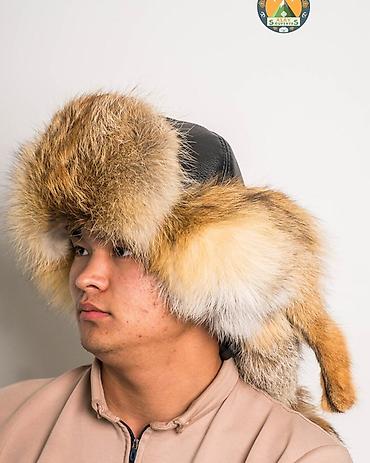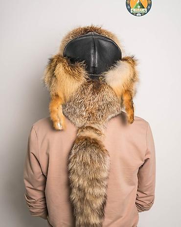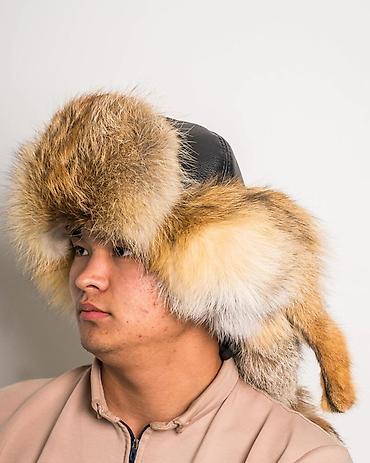 Меховая шапка-ушанка из натурального меха лисы с длинным хвостом.