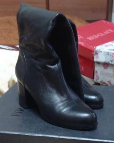 Женские демисезонные ботинки/полусапоги - Цвет: черный - Материалы: мягкая замша по верху, лакированные кожаные мыски - Носок: квадратной формы с глянцевой вставкой - Подошва: прочная, рельефная -...