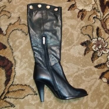 Сапоги хорошие качественные из чёрной мягкой бархатистой замши, размер 39 (подойдут и на 38 размер), турецкие. Один раз одевала в офис, мне маловаты. Продаю за 2900сом (покупала в магазине за 85...