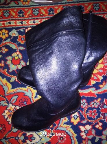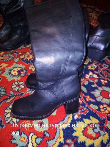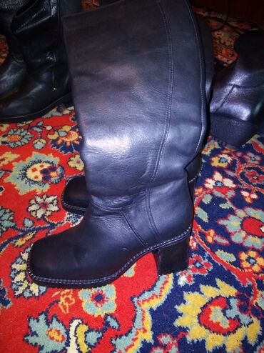 Стильные женские сапоги из натуральной кожи — несколько пар на выбор. 1) Черные кожаные сапоги, б/у, размер 36, Италия, высота каблука 8 см, в хорошем состоянии, для худеньких ножек - Материал: гл...
