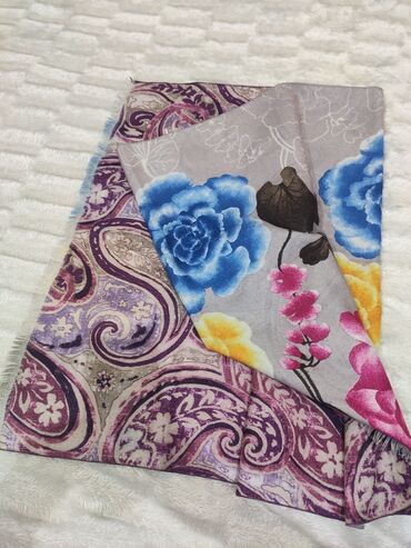 Палантин само вязка новый.- 600 сом. Шарфы и платки шифон, щелк, вискоза - по 70 - 80 сом.. Шарф набивной, розы. теплый, 1,4 см длинна - 150 сом. Шарф красный, короткий, клетка - 100 сом. Диадема-...