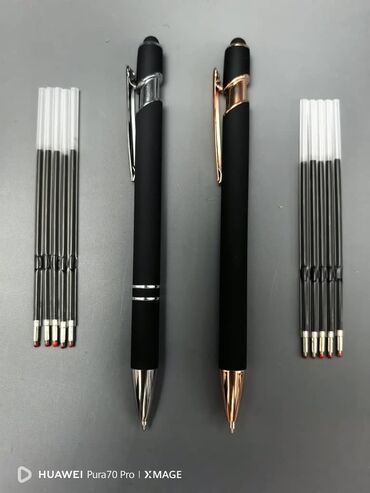 Стильные шариковые ручки с запасными стержнями (5шт) и стилусом для сенсорных экранов