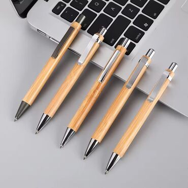 Также представлены модели с бамбуковым корпусом и металлической фурнитурой: экологичный материал, разные варианты клипс и наконечников.
