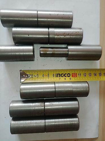 - Ориентировочные габариты: общая длина каждой детали около 120–140 мм; диаметр основных цилиндров порядка 30–35 мм; шейка на ступенчатых валах примерно 18–20 мм (см. ленту-рулетку на фото для масштаба).