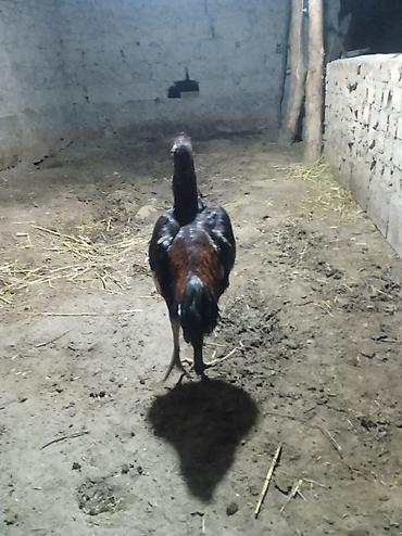 Петух бойцовой породы (похож на азиатский тип, высокий рост и длинная шея). Особенности: - крепкое телосложение, длинные ноги и мощные лапы с выраженными шпорами; - узкая голова, развитый клюв,...