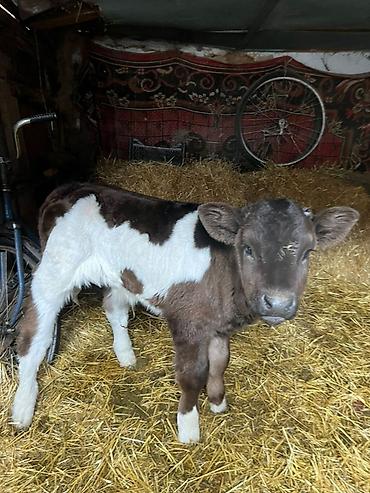 Телёнок, помесный, молочного направления.