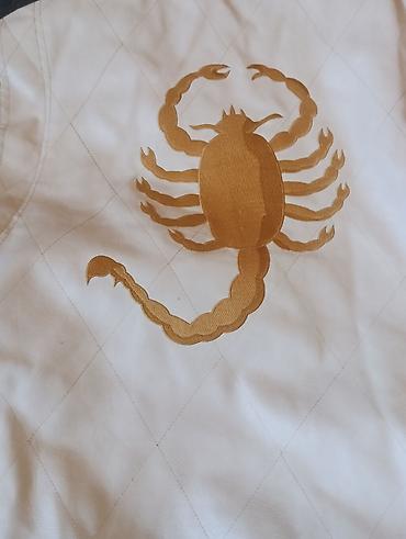 - Большая вышивка золотого скорпиона на спине