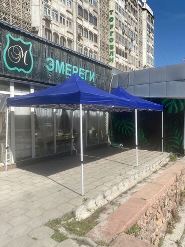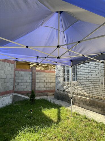 Шатер с синим каркасом Размеры и цена : 2х2- 2х3- 3х3- 3х4.5- 3х6- С белым каркасом 2х2-5000 сом 2х3-6000 сом 3х3-7000 сом 3х4.5-7500 сом 3х6-10000 сом С зелёным каркасом 3х6-11000 сом