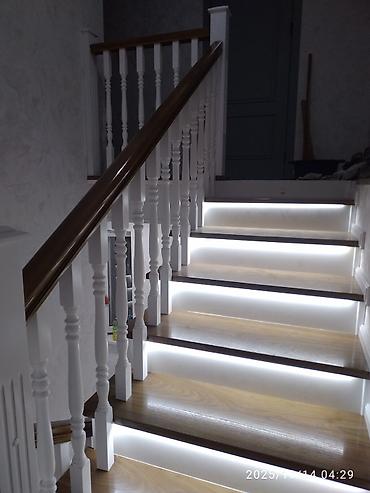 "шаты" компаниясы сиздерге үйүңүздүн тепкичтерин ( лестница ) жасап орнотуу жумуштарын сунуштайт. Биздин кызматтар; консультация , планировка, каркастарын орнотуу, жыгач жасалгаларын жасап орнотуу. Материалдар, карагач , сосна, фанера ,подсветка, металл. Ж.Б. өз убагында жана ишенимдүү кызмат.