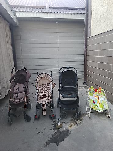 Сатылат продается коляски 3 штуки коляски и 1штук качели для малышей они все хорошее состояние дети выросли почти новые цены от 1000сомов до 2000 тысяч сомов все товары фирменный качественный