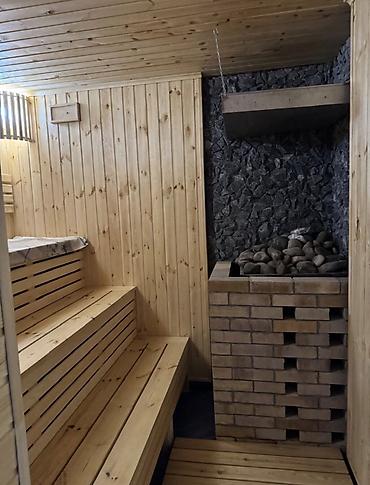 Сауна/банный комплекс с парной на дровах и зоной отдыха - Просторная парная с деревянной отделкой, мягким светом и удобными полками на нескольких уровнях. - Аксессуары для парения: шайка/кадка, ...