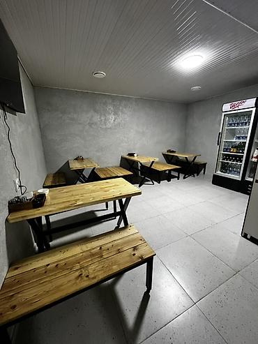 - Зал для компаний: добротные деревянные столы и лавки.