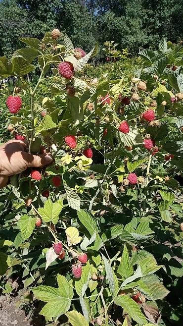 Также в наличии саженцы малины (на фото) — ягода крупная, ярко‑красная, ароматная, подходит для свежего употребления и переработки.