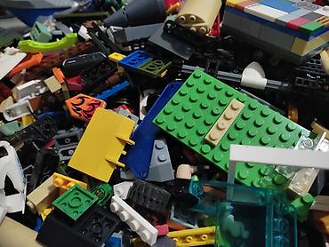 - Все детали перемешаны; встречаются элементы из тематик City, Technic, Castle/Medieval, Super Heroes и др.