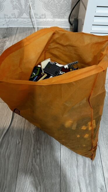 - Большой объем россыпью: элементы разных серий и цветов в оранжевом мешке.