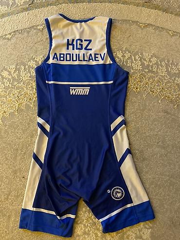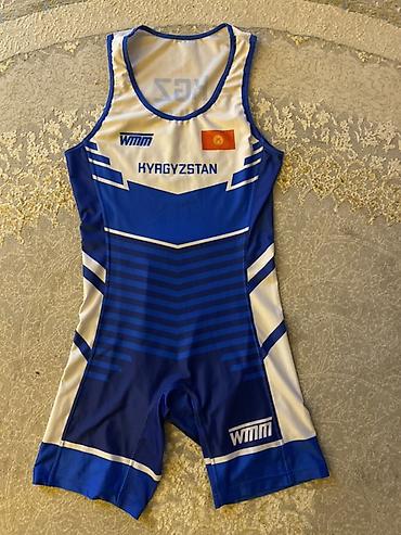 Спортивный комплект с символикой Кыргызстана.учоо биригип 1500сом бу акция размер s Состав комплекта: - Две борцовки-комбинезона (слинглеты) синего цвета: одна с геометрическим принтом и надписью ...