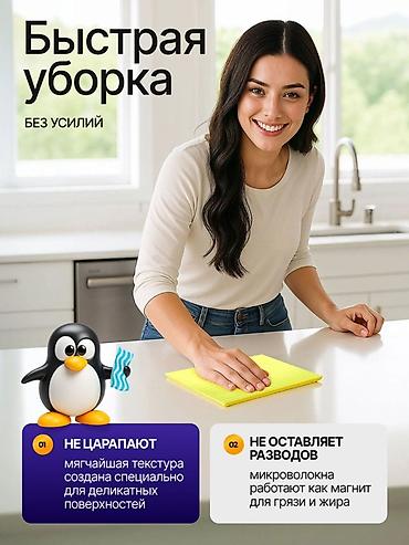 - Уход и использование: подходят для влажной и сухой уборки, можно многократно полоскать и отжимать, быстро сохнут