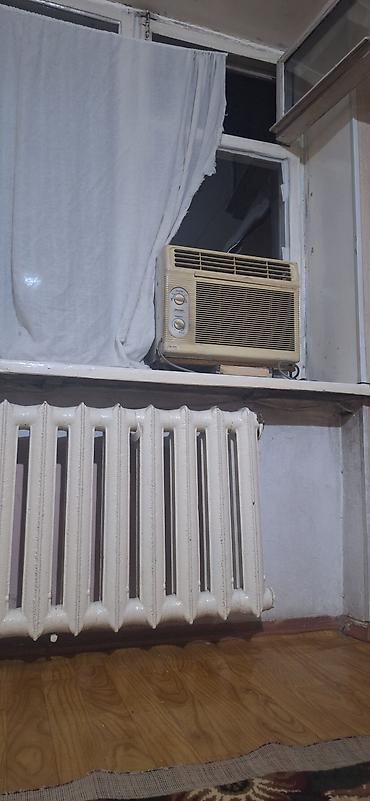 - Окно: большое, с форточкой; установлена оконная сплит-система/оконный кондиционер с механическим управлением.