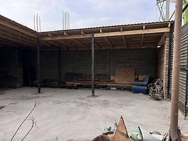 Крытая площадка/навес из дерева и металла для хранения и работы