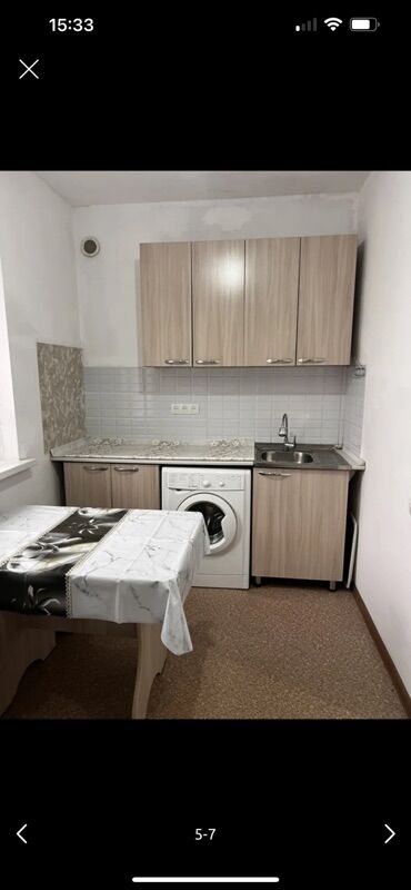 Сдается компактная студия с собственной кухней и санузлом. Кухня: - Гарнитур с верхними и нижними шкафами, открытые полки - Столешница под камень, фартук в едином стиле - Круглая мойка с краном - ...25 000 KGS