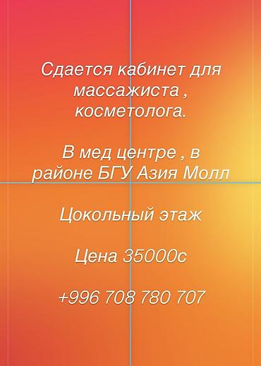 Кабинет для массажа косметологии. 30 м2. Аренда 60000 сом и .депозит 1 линия. Вход с улицы Байтик-Баатыра 37 Доступ 24/7 Уютное отдельное помещение с мягким освещением и декоративной зелень...