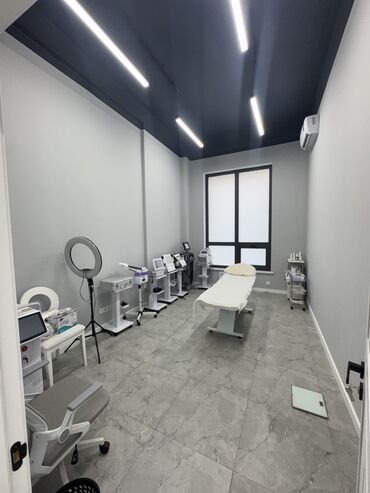 Кабинет для медицинской практики/косметологии - Просторное помещение с высоким потолком и ярким потолочным освещением - Зонирование: рабочая зона врача/косметолога, зона ожидания для клиентов, зон...