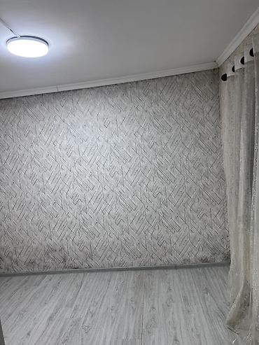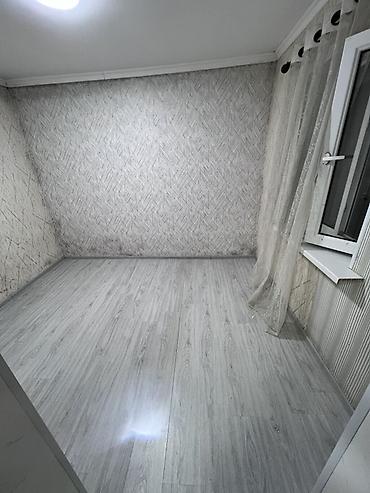 - Комната светлая, окно ПВХ, пол — светлый ламинат, стены оклеены обоями нейтрального оттенка, потолок с точечным освещением.