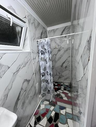 - Стены санузла отделаны под мрамор, имеется окно для проветривания.