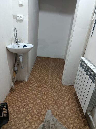Студия с кухонным блоком и санузлом - Планировка: компактная комната-студия с окном и рулонной шторой, отдельный санузел с душевой зоной. - Кухня: линейный гарнитур с верхними и нижними шкафами, к...