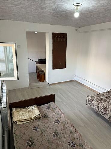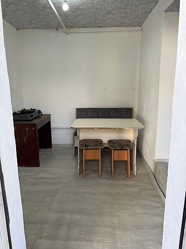 Сдается небольшая комната с кухонной зоной. Планировка: вход через застекленную дверь во двор, отдельно выделенная кухня и жилая комната.