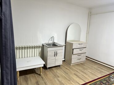 3 кишиге максимум Студия с собственной кухней и санузлом - Планировка: одна комната открытого типа с зоной гостиной/спальни и компактной кухней у входа. - Отделка: светлые стены, натяжной потолок...