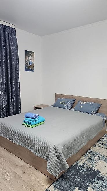 - Просторная двуспальная кровать с высоким изголовьем, комплект постельного белья и полотенца.