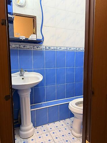 - Санузел: отделка плиткой, умывальник на пьедестале, унитаз, зеркало-полка, вытяжка/светильник.