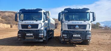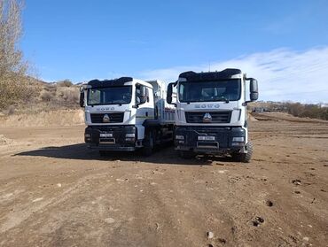 - Самосвалы HOWO (2 единицы) — тяжёлый класс, кузов с высокими бортами, рассчитаны на перевозку сыпучих материалов (песок, щебень, грунт), вывоз/подвоз инертных грузов с объектов. Полноразмерные внедорожные шины, усиленный бампер, верхняя защита кабины. Оптимальны для карьеров и строительных площадок.