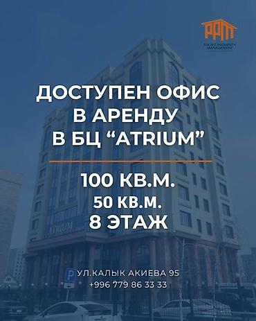 В современном Бизнес Центре "ATRIUM" по адресу Калык Акиева 95. Обустроенный бизнес центр, современная система вентиляции и кондиционирования