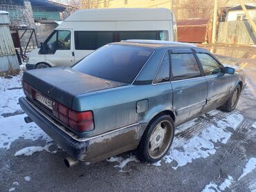 Audi 100 C3 седан, ориентировочно конец 80‑х – начало 90‑х годов. Кузов – 4 двери, цвет голубой металлик с чёрным капотом и крышкой багажника.