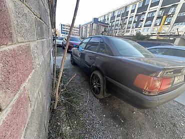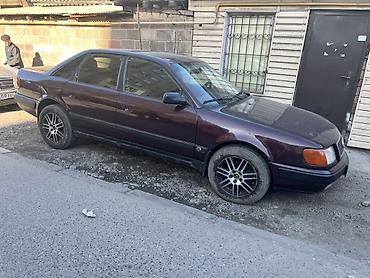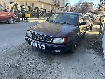 Audi 100 C4 седан, левый руль. Бензиновый двигатель 2.3 (эмблема 2.3E на крышке багажника), передний привод. Цвет — темно-бордовый. Литые диски, низкопрофильная резина. Передняя оптика прямоугольная, противотуманные фары в бампере. Задние фонари красные, одинарный выхлоп. Салон тканевый, на сиденьях установлены черные чехлы; задний ряд широкий, есть подлокотник, коврики-резинки. Электростеклоподъемники передние, центральный замок, зеркала с электроприводом. Номерные знаки KG. Подойдет для повседневной езды: комфортный просторный салон, мягкая подвеска, надежный V6 2.6E.