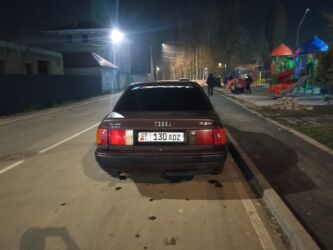 Audi 100 C4 седан, темно-бордовый. Номерная симпатия KG 07. Бэджи 2.3 на крышке багажника, шильдик quattro на боковой накладке. Внешние особенности: