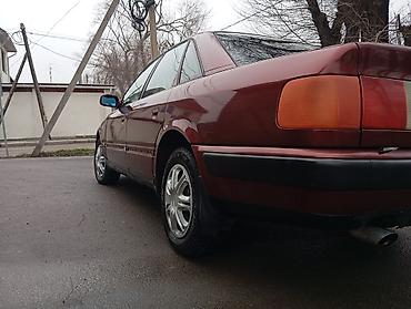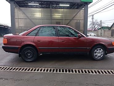 Audi 100 C4, седан, красно-бордовый цвет. Кузов классической формы с широкой решёткой радиатора и фирменными четырьмя кольцами. Передние фары прямоугольные, с оранжевыми повторителями, задние фонари — раздельные, крупные. Черные пластиковые бампера по кругу, молдинги по бокам. Легкосплавные диски спереди, сзади — штампованный диск. Тinted стекла задней полусферы. Антенна на крыше у задней части. Номерной знак формата KG.