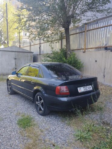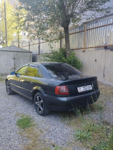 КыргызстанAudi A4 седан, черный цвет кузова. Кузов тип B5 (дорестайлинг/рестайлинг с узкими фарами), пятидверный седан. Передний бампер с интегрированной решеткой радиатора и фирменными четырьмя кольцами, галогенные фары, противотуманки в бампере. Задние фонари красные, выхлоп с одной трубой слева. Тонированные стекла по кругу. Легкосплавные диски черные с полированными спицами, всесезонные/летние шины. Зеркала и молдинги в цвет кузова, боковые повторители поворотов на крыльях. Салон — темный, 5 мест, задняя спинка со складыванием. Классическая компоновка, надежная подвеска, просторный багажник. Отлично подходит для ежедневной езды по городу и трассе. Номерные знаки KG (Кыргызстан).