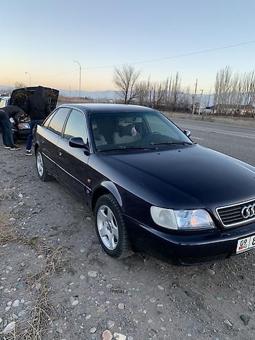 Audi A6 (C4), седан, темно-синий цвет. Бензиновый двигатель 2.6 (указано на крышке багажника), передний привод. Кузов классической формы C4, тонированные стекла по кругу. Экстерьер: - Литые диски....