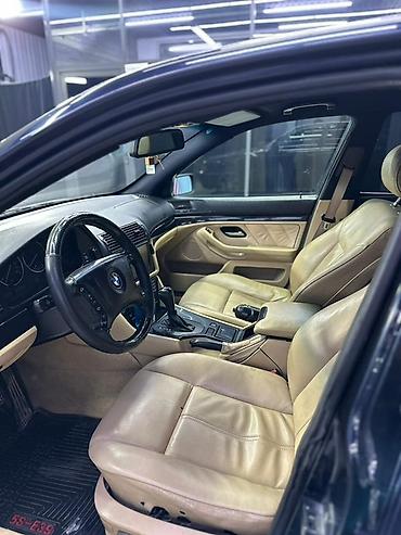 BMW 5 Series (E39) седан, темно-синий цвет кузова, светлый кожаный салон.