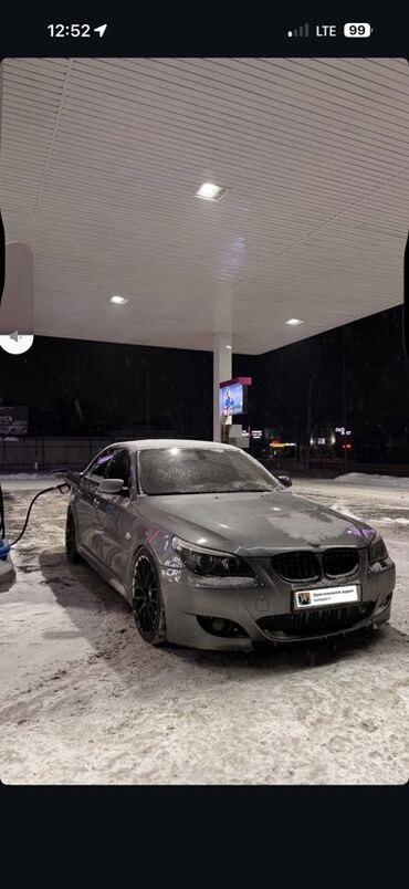 BMW 5 Series E60 530i, серебристый седан. Ключевые особенности: - Бензиновый 6‑цилиндровый двигатель 3.0 (модель 530i), задний привод. - АКПП. - Оригинальный M‑аэродинамический обвес: передний спл...